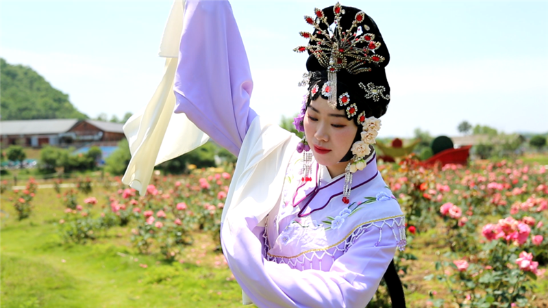 蓝天白云下,景区内的花海盛开正艳,吸引游客拍照留念,各种游乐项目也让孩子们开心不已。永州市祁阳祁剧团的演员们现场表演祁剧、祁阳小调、祁阳渔鼓,让游客们近距离欣赏国家非物质文化的魅力。