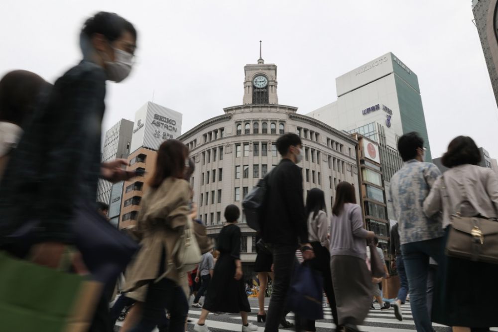 2020年10月4日在日本东京银座拍摄的行人。新华社记者杜潇逸摄
