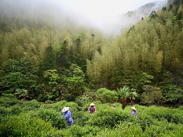 2022年5月10日,福建武夷山市桐木村工人在采茶。(新华社发)生命共同体