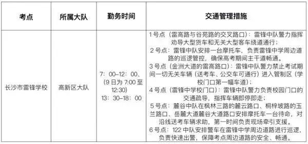 附:2022高考期间长沙考区勤务安排表