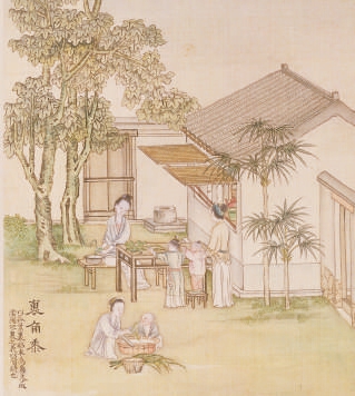【清】徐扬《端阳故事图册》之“裹角黍”