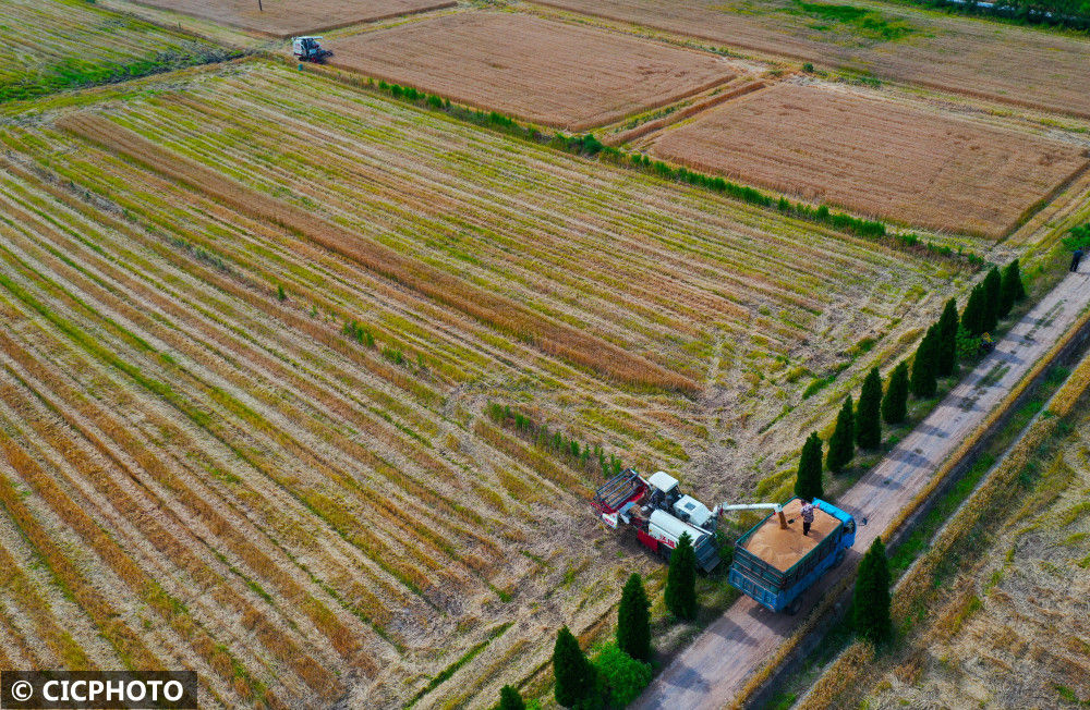 眼下,夏粮主产区小麦正由南向北陆续成熟,麦浪飘香,农民们抢抓晴好天气在田间地头忙碌。