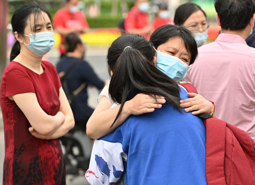 ↑6月7日,在北京北大附中考点外,考生在进入考点时与母亲拥抱。新华社记者 李鑫 摄