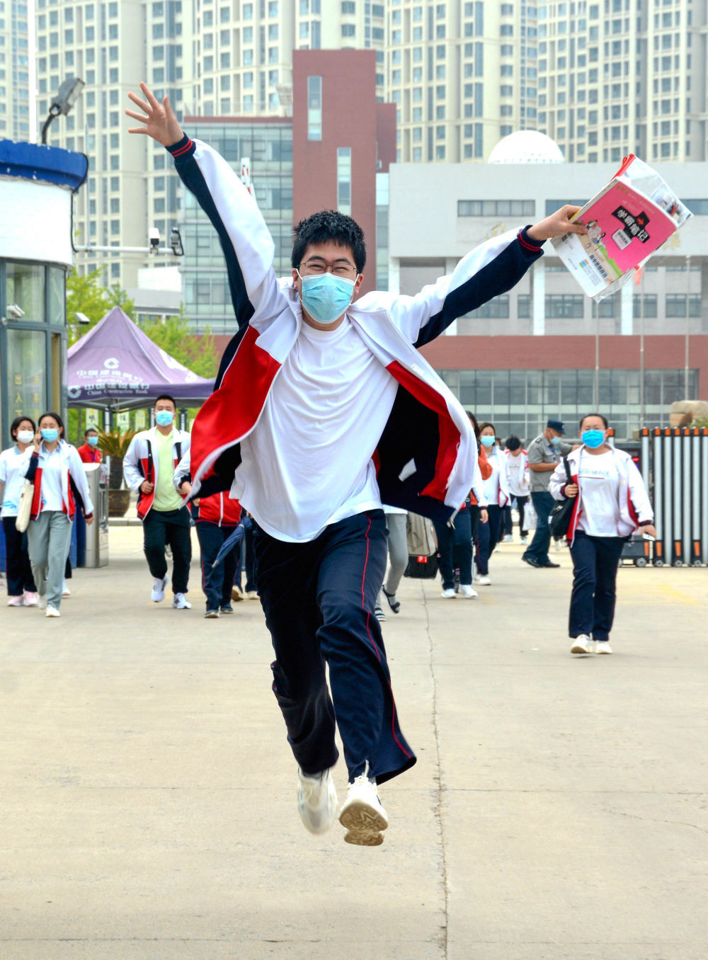↑6月9日,一名考生在考试结束后跑出河北省秦皇岛市第一中学考点。新华社发(郭楠 摄)