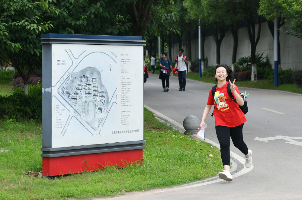↑6月9日,在湖北省宜昌市夷陵中学考点,一名考生考试结束后跑出考场。新华社发(王辉富 摄)