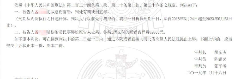 法院一审曾判孟某故意伤害罪
