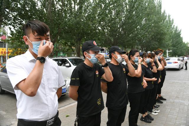 6月13日,在呼和浩特市赛罕区一家餐厅外,餐厅服务人员在开餐前确保正确佩戴口罩。新华社记者 贝赫 摄