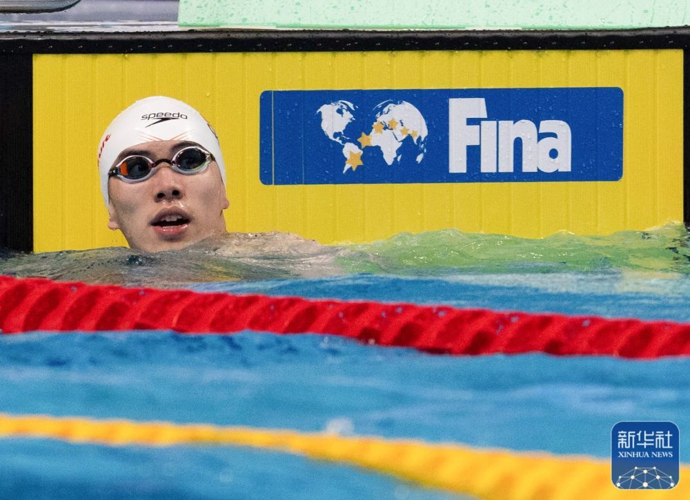 ↑中国选手季新杰在男子400米自由泳预赛后,他无缘该项目决赛。