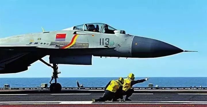 中国第一代舰载战斗机歼-15成功着舰