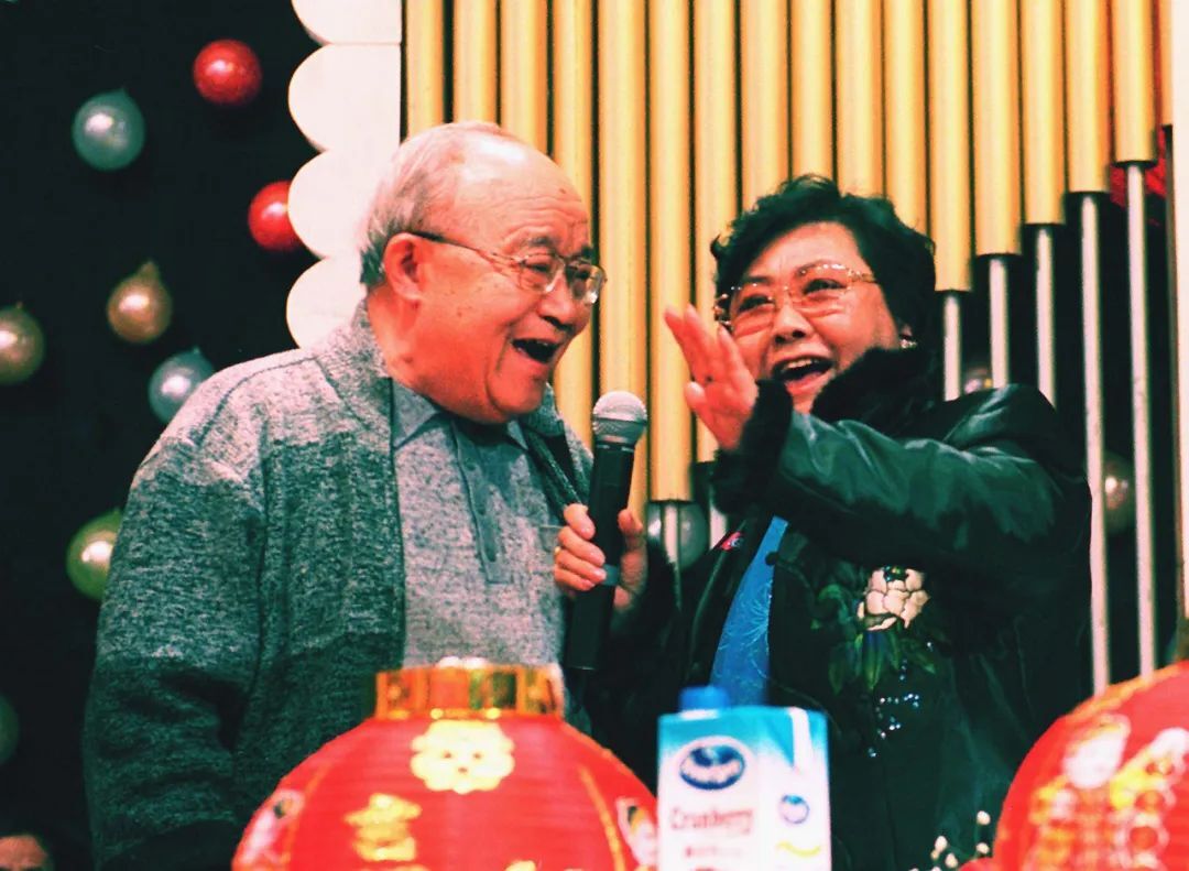 乔羽和郭兰英(右)同台演唱《我的祖国》。图/中新社发 武仲林 摄
