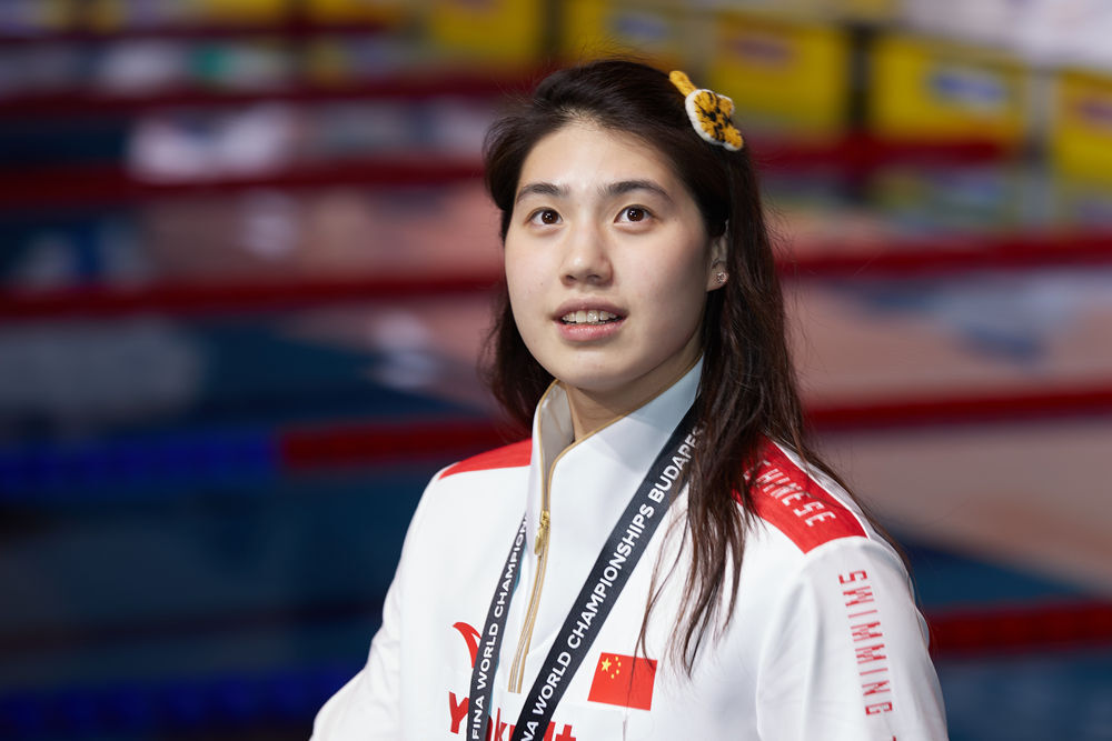 张雨霏在颁奖仪式后留影。新华社记者 孟鼎博 摄