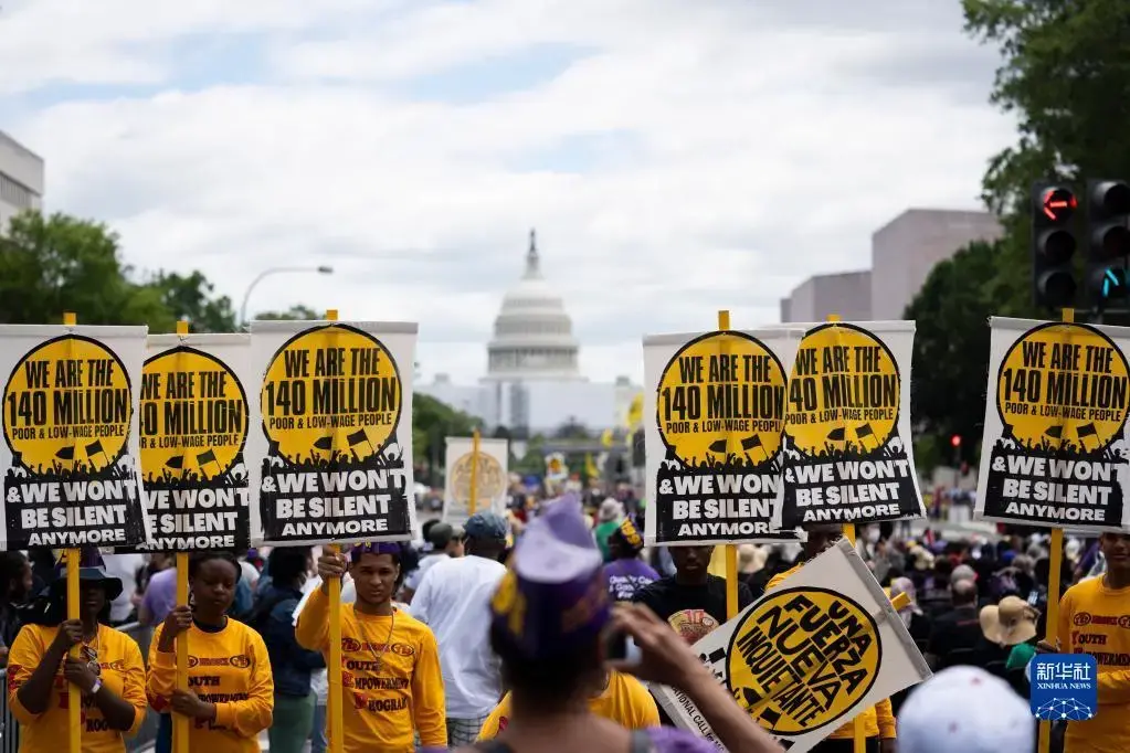 6月18日,来自美国全国各地的数千民众在华盛顿国会大厦附近举行集会,抗议美国根深蒂固的种族歧视以及由此引发的经济不公等一系列社会问题。