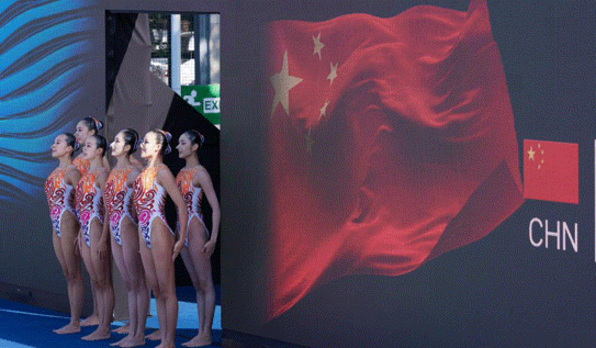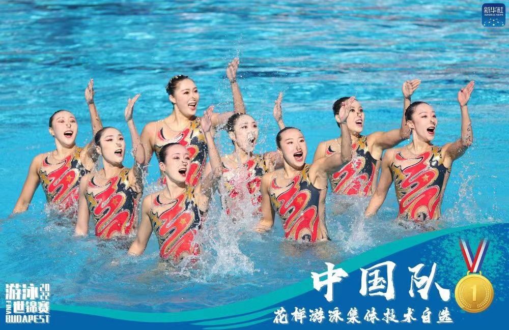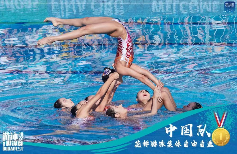由冯雨、常昊、王赐月、王柳懿、张雅怡、向玢璇、王芊懿、肖雁宁组成的中国队,在21日的集体技术自选决赛中,伴着《我爱你中国》的背景音乐,以94.7202分的成绩取得金牌!这是中国花游姑娘首次站上游泳世锦赛集体技术自选的最高领奖台,是中国花游队自1983年建队以来在奥运集体项目上取得的历史性突破!随后,在24日的集体自由自选比赛中,她们以《巾帼英雄》为主题,以中国传统乐器弹奏的乐曲为背景音乐,在世界赛场上展现了令人印象深刻的中国元素,并再次赢得一枚金牌!