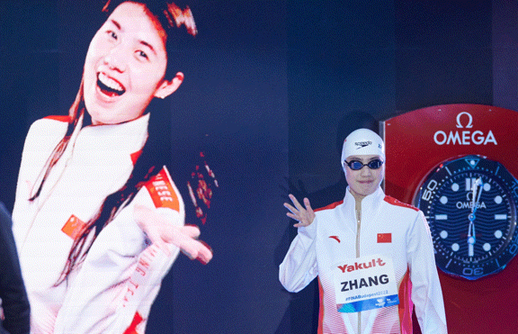 ↑6月24日,唐钱婷在女子50米蛙泳半决赛中,以30秒10的成绩刷新亚洲纪录,并在决赛中获得第四名。
