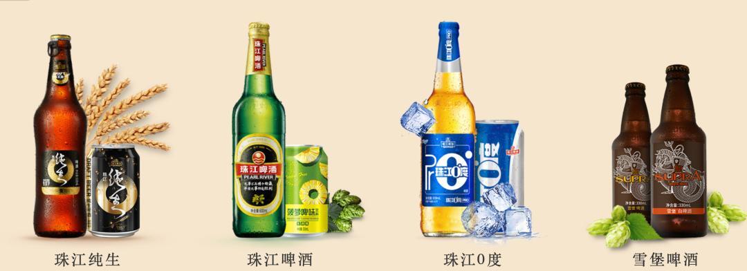 目前,珠江啤酒旗下有珠江纯生、珠江啤酒(即经典款,被称为老珠啤)、珠江0度、雪堡啤酒等多个系列。