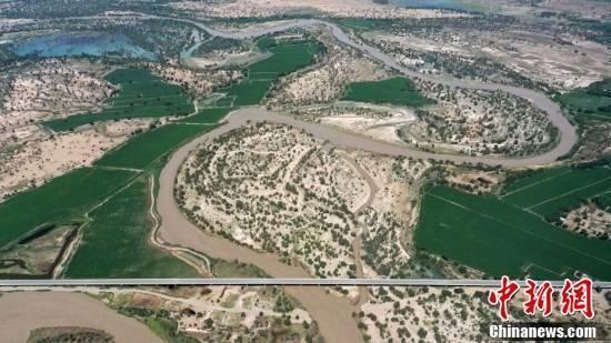 一场夏雨过后的新疆尉且沙漠公路塔里木河大桥美景。(无人机照片 中新社发 确·胡热 摄 图片来源:CNSphoto)