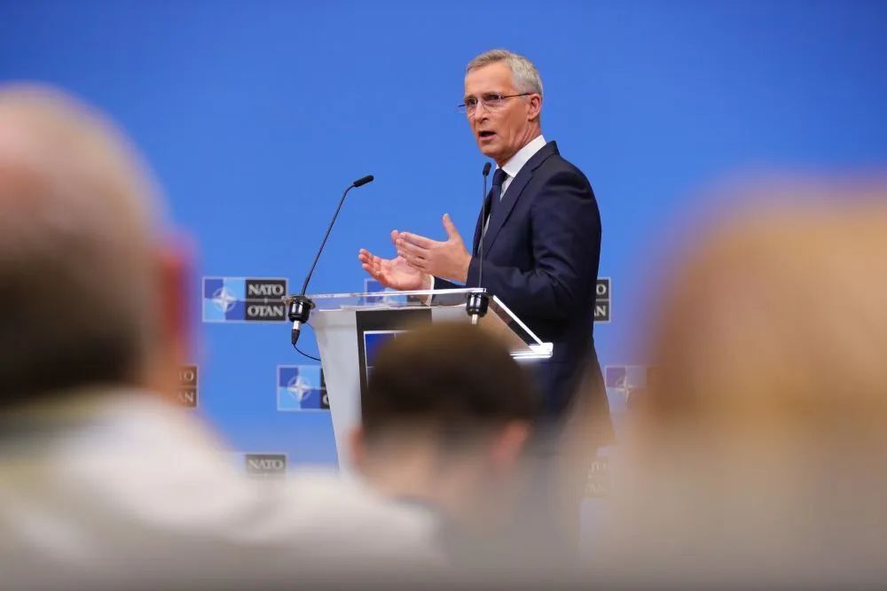 ↑6月16日,在比利时布鲁塞尔的北约总部,北约秘书长斯托尔滕贝格在北约成员国国防部长会议后的新闻发布会上说,北约将在东翼前沿地区部署更多部队,以加强防御和实现快速增援。新华社记者郑焕松摄
