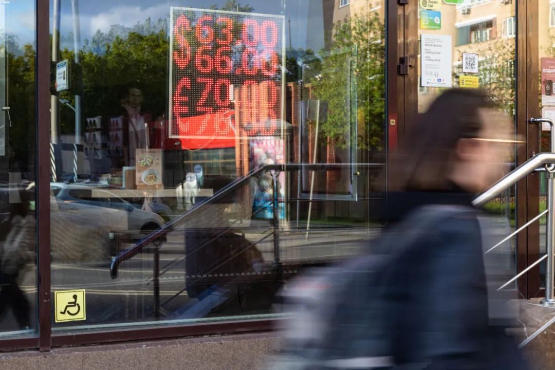 ▲5月24日,在俄罗斯首都莫斯科,行人经过一家外汇兑换点。新华社记者白雪骐摄