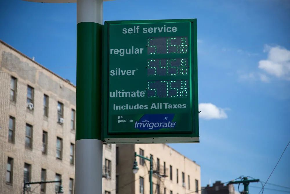 ▲6月10日,美国纽约一处加油站的电子屏显示油品价格。(新华社发,郭克摄)