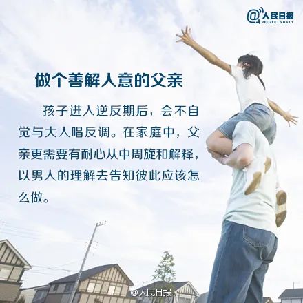 孩子进入逆反期,会不自觉地与大人唱反调。父亲需要更有耐心地从中周旋和解释,告诉孩子应该怎么解决问题。