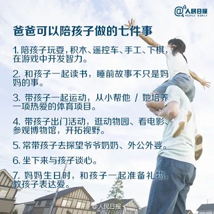 父爱不缺席,对孩子的成长起着至关重要的作用。更好地陪伴孩子成长,从以下7件小事做起吧!
