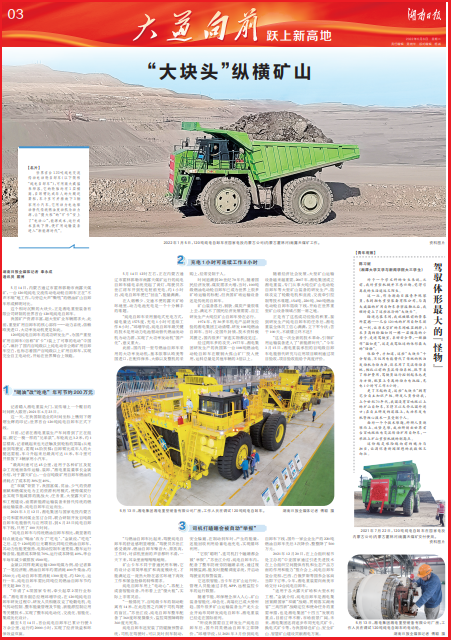 “最高时速可达45公里,适用于各种矿区及复杂工况地面条件运输、装卸。”湘电重装董事长金斌介绍,对于露天矿山,一台百吨级矿用自卸车燃油的消耗占了成本的30%至40%。