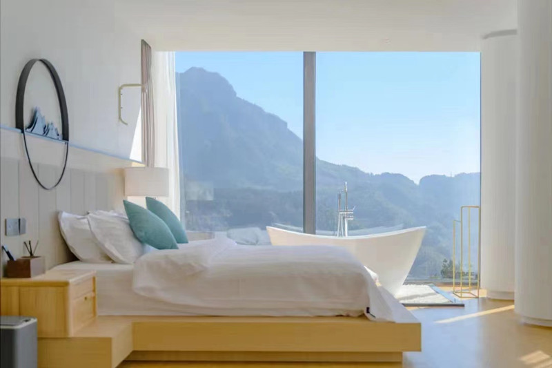 栖漫·悦林谷伴山度假民宿,距离张家界国家森林公园入口仅2公里,既方便游客去景区游玩,又为客人保留了一片安静的秘境。民宿直面张家界著名景点百丈峡,四面环山,让人有一种隐居峡谷的奇妙之感。每间客房还配有超大的落地窗,将窗外的美景引入室内,在房间里就能180度观景,躺在床上便可以私享峡谷美景。房间里的装置也是主理人精心挑选的,栖漫·悦林谷民宿甚至装备了南方少有的全屋地暖。夏季来这里能在郁郁葱葱的森林里避暑,而冬季来山里度假,在温暖的房间里看窗外银装素裹。