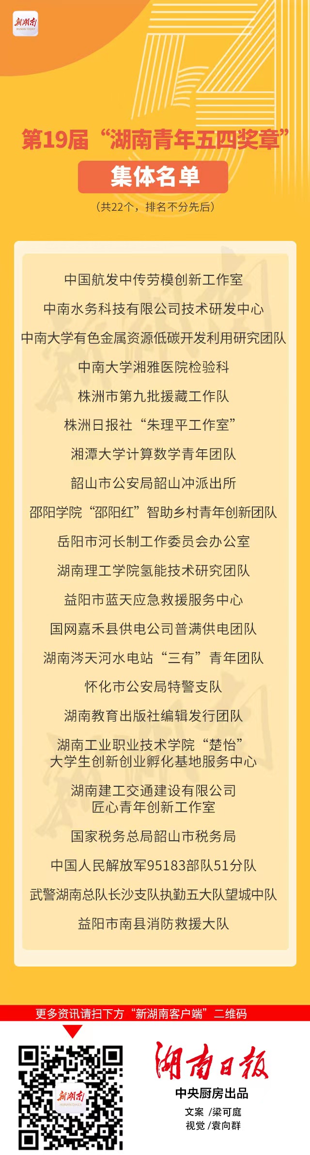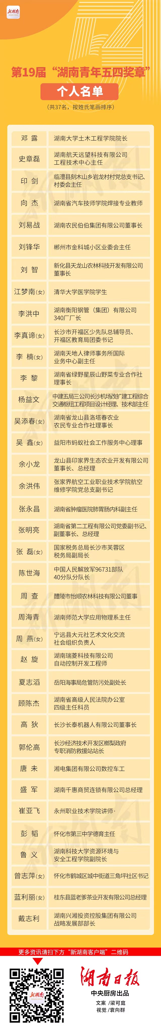 长图|他们是青年榜样!第19届“湖南青年五四奖章”评选揭晓