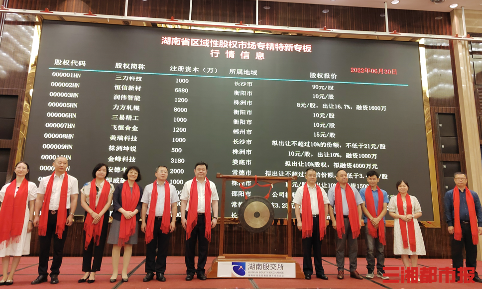 三湘都市报·新湖南客户端6月30日讯(全媒体记者 潘显璇 实习生 周杨 高悦涵)湖南省区域性股权市场专精特新专板今天正式开板,首批21家企业集体挂牌。根据规划,到2025年,湖南将推动300家以上专精特新企业在区域性股权市场专精特新专板挂牌,推动一批专精特新企业登陆沪深北交易所及新三板,助推专板挂牌企业实现各类融资不少于100亿元。