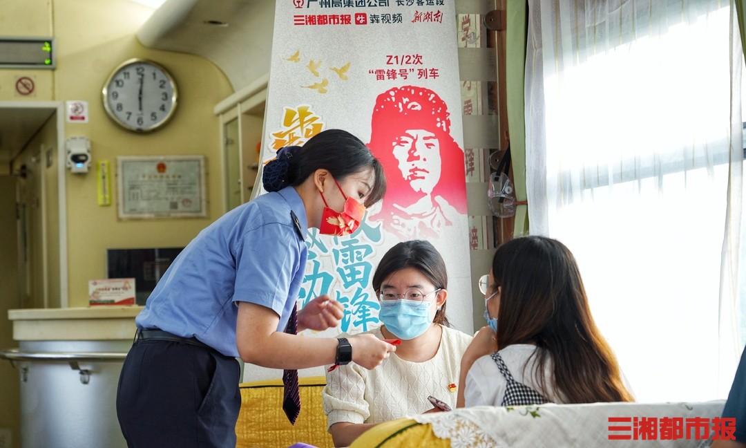 “Z1/2次‘雷锋号’专列,自1975年来开行至今,先后荣获百余先进称号,是优质客运服务的窗口。新时代如何让旅客体验更美好,我们一直在不断更新服务举措。”张令说,“通过党员示范岗带动团员青年和职工群众,为旅客提供精准服务是新时代雷锋精神的体现。今天,我们联合湖南日报社犇视频和三湘都市报开展主题党日活动,在岗位上践行为人民服务之初心。”