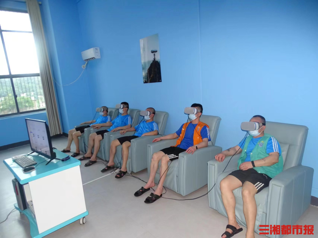 (株洲市强制戒毒隔离所里,学员在进行虚拟现实(VR)戒毒。通讯员供图)