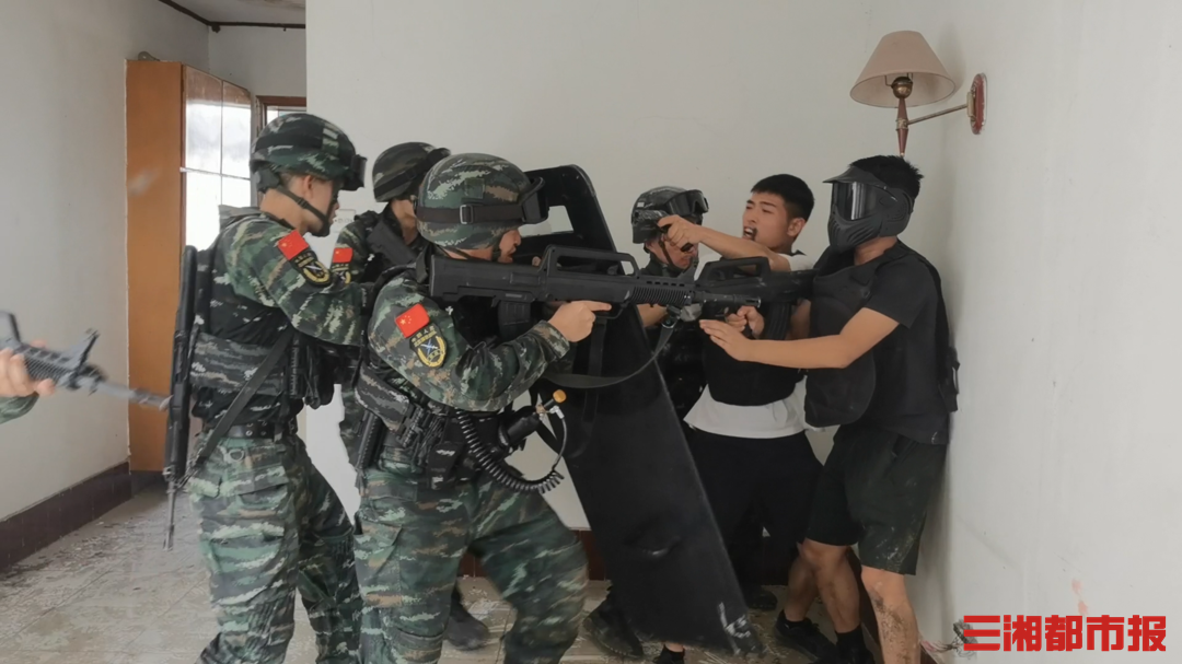 三湘都市报·新湖南客户端6月16日讯(全媒体记者 周可 通讯员 梁逸乾 许东峰 李兆杰)饵雷、绊雷、遥控爆炸物、定时炸弹、持枪“暴徒”……6月15日,常德某地武警湖南总队湘北片区楼房反劫持演练现场,特战官兵排雷突入,精准高效解救人质,抓捕暴恐份子,在实战环境下,锤炼特战官兵打赢致胜的实战本领。