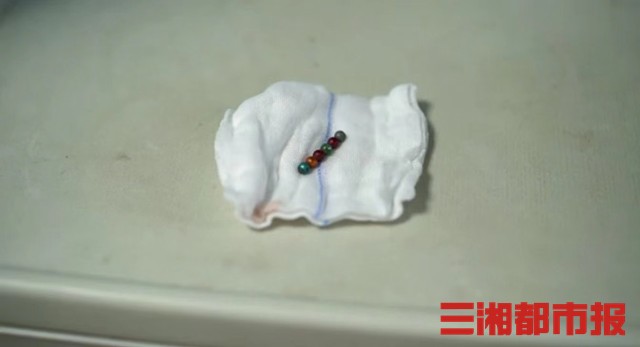 胃肠外科二病区主任刘俊林组织科室讨论,为奇奇安排了手术,手术团队在腹腔镜下,通过对小肠肠管一节一节的探查,发现了6颗磁力珠,由于磁力珠相互吸引,小肠之间肠壁受压导致了穿孔。
