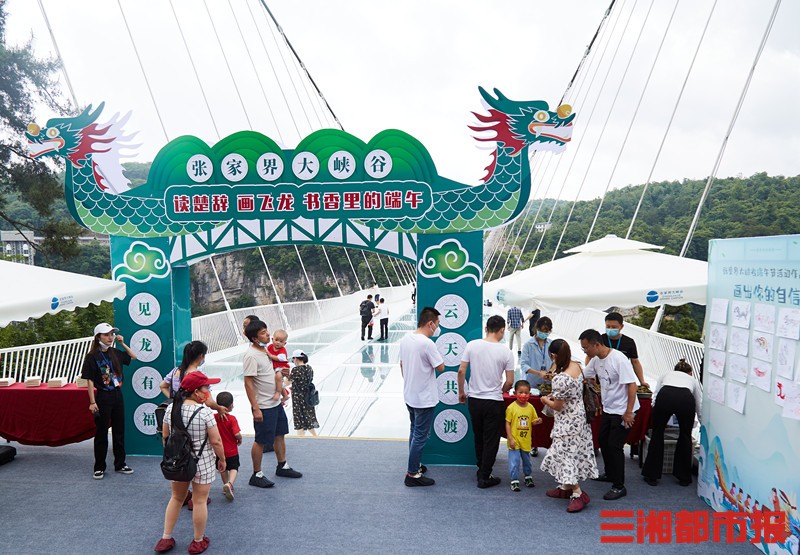 据悉,张家界大峡谷本次端午节活动将持续到6月5日,游客在大峡谷景区云天渡玻璃桥现场画出“飞龙”或《楚辞》中的动植物,就可以获得一份景区提供的土家粽子。此外,大峡谷景区还有奖征集游客端午节(6月3日—5日)在张家界大峡谷景区游玩的美图,被评为优秀美图者,每人可获中国经典《楚辞》一本。游客可以将图片发送到张家界大峡谷景区公众号后台参与。