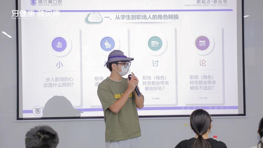 随后,品牌部经理吴俊杰先生宣讲雅贝康口腔企业文化,重点围绕集团发展历程、发展方向、未来愿景等。在培训课程上,他阐述了雅贝康口腔“爱患如己,规范诊疗”的企业发展理念,以及“做老百姓家门口的口腔医院”的企业使命。期待各位实习生在雅贝康学习、成长,在工作中成就辉煌未来。