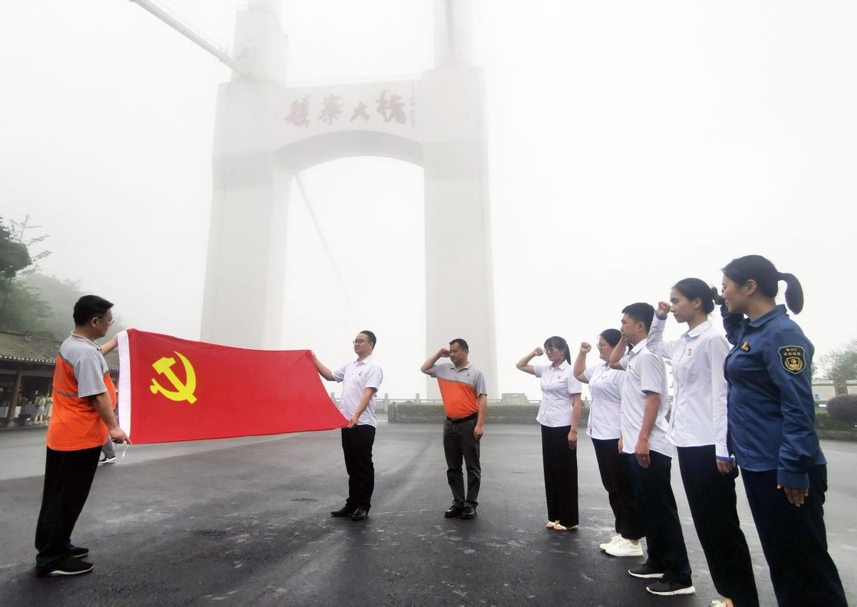 ▲党员们在矮寨大桥重温入党誓词