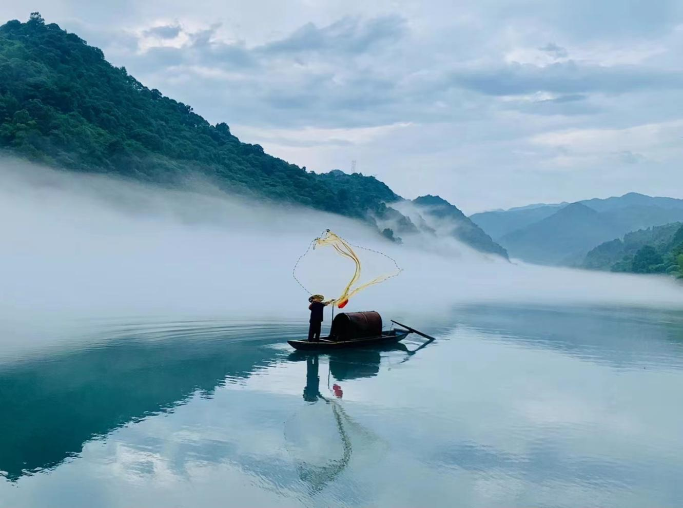 太阳似乎是被这欢呼声吵醒,它露出半个脸,似乎是感觉该起床了,便像渔夫一样慢慢地要把云雾收回去。那缕缕云雾像片片银色的羽毛,在空中盘旋,不忍离去;那与清风缠绵的云雾,也好似舍不得人间,一步三回头。我大口地吸吮着甘甜而湿润的空气,看着渐渐远去的渔船,惆怅、伤感蓦然涌起。我不由想起一句唐诗:“黄鹤一去不复返,白云千载空悠悠。”(作者系湖南省生态环境厅退休老干部)