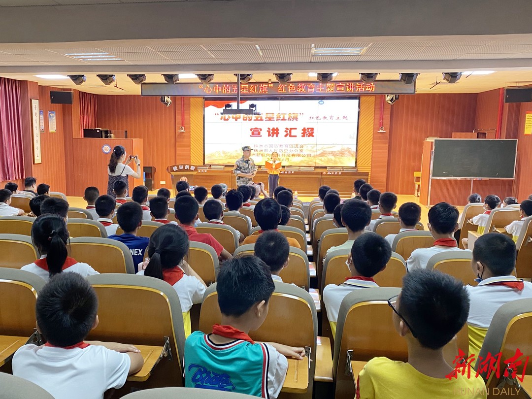 新湖南客户端6月14日讯(通讯员 文志鸿 肖亚南)近日,2022年“心中的五星红旗”红色教育主题宣讲暨国防(人防)知识公益宣传教育进校园活动在株洲市天元区二中附小、泰山学校、新马小学举行。