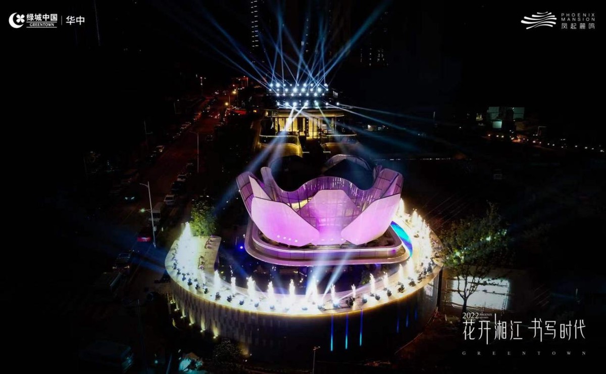 还未到绿城·凤起麓鸣生活美学馆,从远处便望见一朵盛开于湘江畔的巨型杜鹃花。