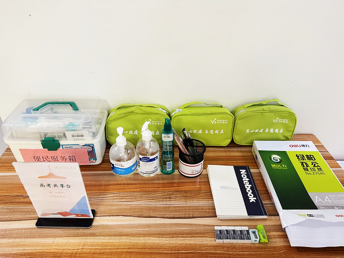 据了解,中高考期间,长沙万科物业还将在20余个小区为广大考生及家长提供温馨服务。在小区门口提供“爱心文具包”,包括2B铅笔、橡皮擦、中性笔等考试必备用品,还有防疫包、矿泉水等,以便考生们免费领用。