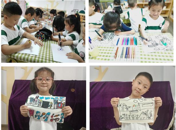 活动结束后,幼儿通过绘画的方式,对活动进行回顾、反思、叙述和表达。幼儿在梳理和表达自己做法和想法的同时,也会去思考别人的做法和想法,这是一个复杂的思维过程,也是一个深入反思的过程。在每一次反思的过程中,幼儿都会在各个层面上不断的重现或回忆自己所经历的游戏。