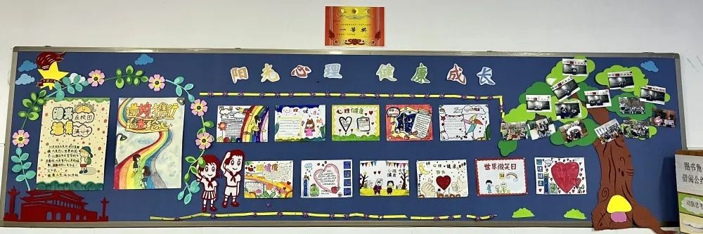 学校组织一至六年级的学生围绕“关爱心理健康”为主题进行创意心理黑板报设计,加强心理健康的关注,学习心理知识。