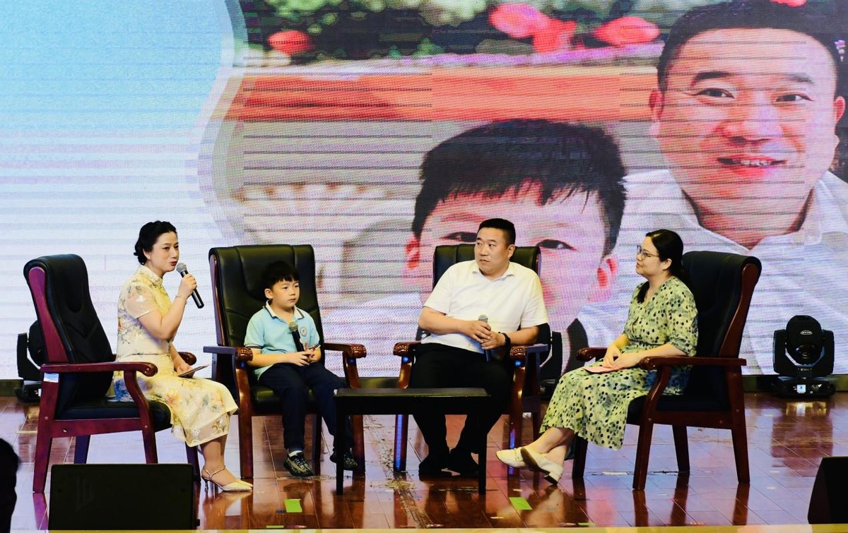 本场活动的书香家庭中,爸爸妈妈分别是黄庆和谢岭、孩子是来自49班的黄一格同学,一家人接受了主持人的现场访谈。