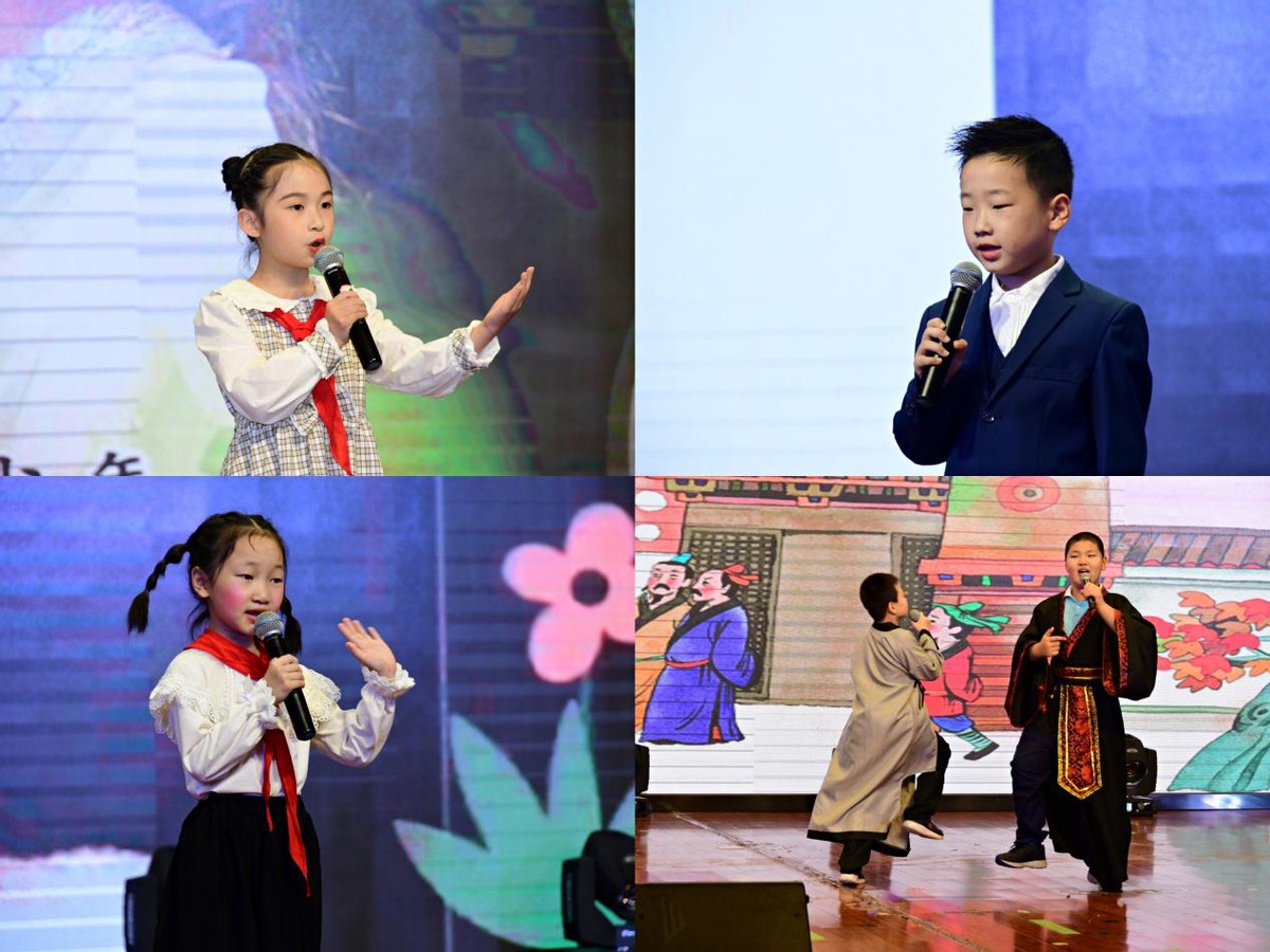 湘锰小学四年级181班谢馨晨分享的是《不完美总动员》;四年级26班的杨子瑜、陶锦添、陈溪妍带来了惟妙惟肖的话剧表演《邯郸学步》。