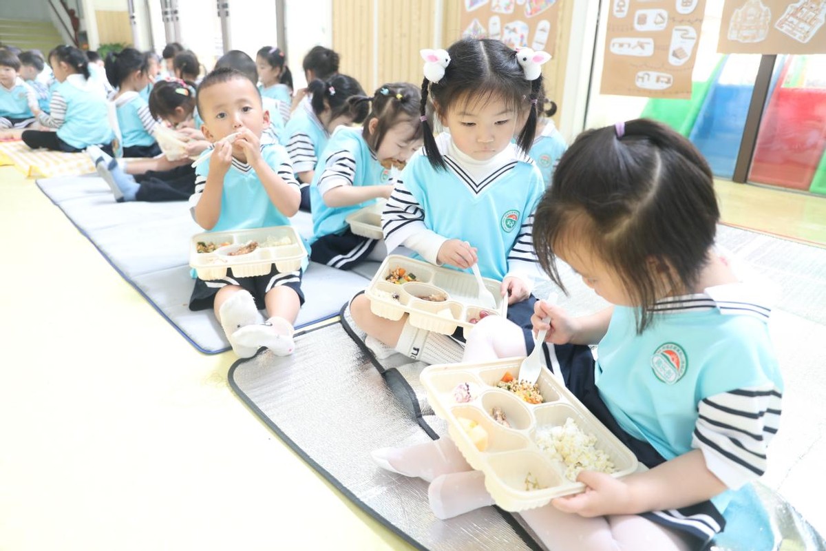建构区与创作区里留下的是孩子们精彩的创意和和谐有爱的合作精神,沙水区与体育游戏区里留下的是孩子们愉快的笑声和尽情游戏的汗水,表演区里留下了孩子们的天真烂漫。除了丰富的游戏活动,山语城幼儿园还为孩子们准备了丰富精美的自助餐点,孩子们坐在野餐垫上和同伴们一边品尝美食,一边分享着当天的露营故事。