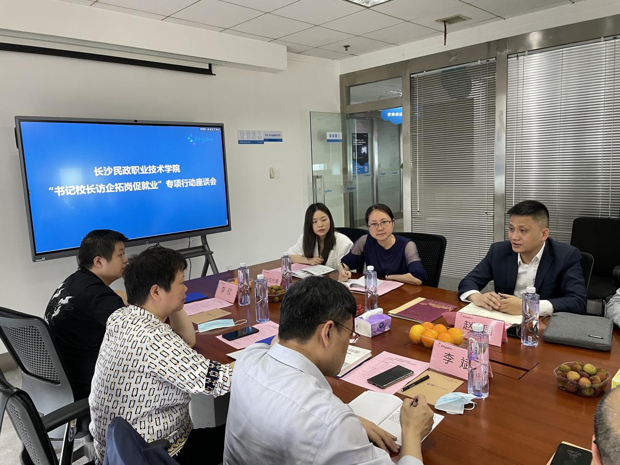 强化产教融合,校企合作拓宽度。学院探索建立产教融合、校企合作、工学结合的长效育人机制,积极响应教育部书记校长访企拓岗促就业专项行动,及时对接本地互联网龙头企业,“走出去”“请进来”,扩大校企稳岗就业的“朋友圈”,力争联系企业新提供岗位不低于100个。5月24日李斌校长、王庆国副校长、邓文达院长、何巍湘处长、李欣副主任一行五人开启“访企拓岗”专项行动,走访了湖南金蝶移动互联技术有限公司、湖南强智科技发展有限公司、湖南创研科技股份有限公司,深入了解了企业用人需求,挖掘了新的岗位资源,据悉5月24日下午湖南强智科技发展有限公司已来院招聘,提供20个项目实施工程师岗位,薪资水平达5000元。未来各专业(方向)要抓紧完善用人单位信息库,建立日常联系互访机制,不断拓展就业新空间。确保每个专业方向有10家以上对口的用人单位。