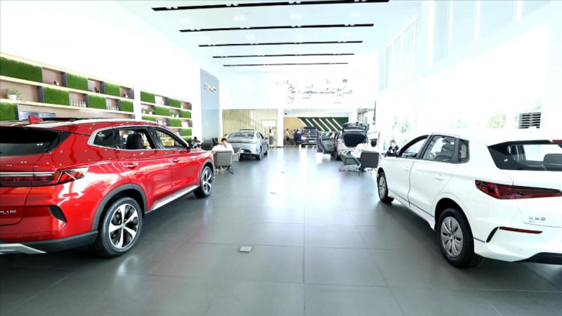 △比亚迪湖南星一4S店内的每款新车都充满了科技感。