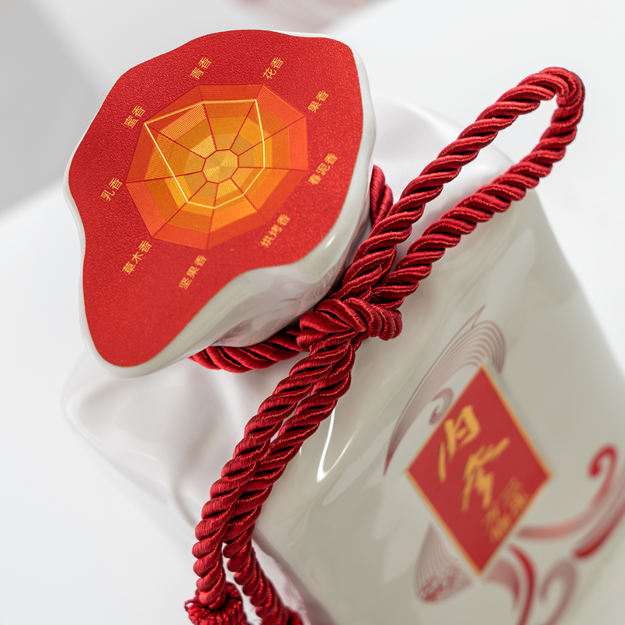 此款酒由蜜甜风格突出并经过多年陶坛洞藏的基酒担当主角。开瓶溢香,独特的蜂蜜般醇甜伴随着兰花香气扑鼻而来。细品慢饮,带着蜜兰香风格的馥郁酒体铺满舌面,氤氲喉间的优雅时时回甘。