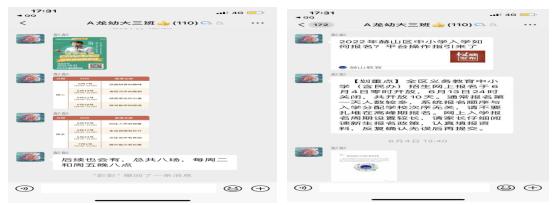 幼儿园设有微信群、家长群、微信公众号等多个宣传平台。这些网络平台让信息发布更便捷、更普及,平台定期向家长推送育儿知识、政策解读、“准备上小学”主题活动介绍、幼升小课程故事分享等内容,打破时间和空间的束缚,发挥媒体的最大效能,提升家长的科学育儿水平。