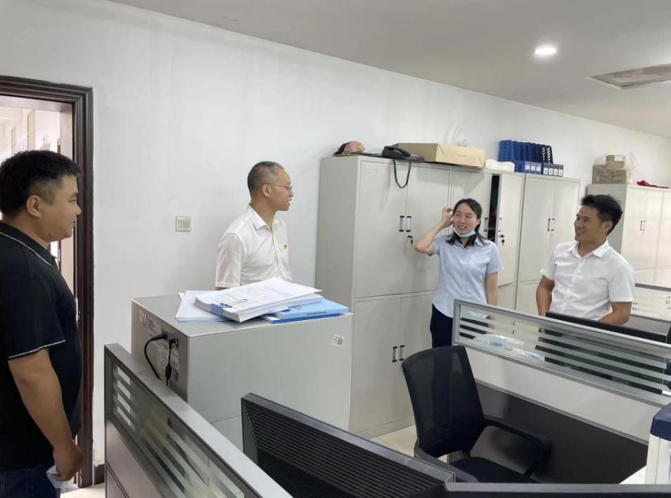 在员工办公区域,谢建国与网点支行长、信贷客户经理面对面交流,了解实际工作中的痛点难点。通过交流,了解客户需求、解决客户难题,着力提升基层网点服务能力。